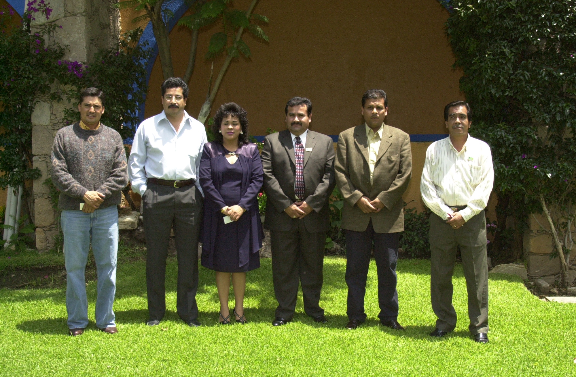 De izquierda a derecha se encuentra Octavio Garcia Secretario, Julio A Salazar Presidente, Jose Pizano Vicepresidente, Juana Gaspar Tesorera, Maria Felix y Erasmo Cultura.